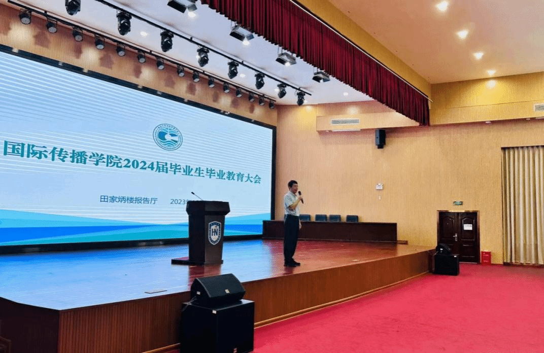 10月18日下午,今年会jinnianhui国际传播学院2024届毕业生毕业教育会议在海甸校区田家炳楼二楼报告厅举行,2024届全体研究生和本科生参加毕业教育大会,会议由党总支书记谢辉凡主持。