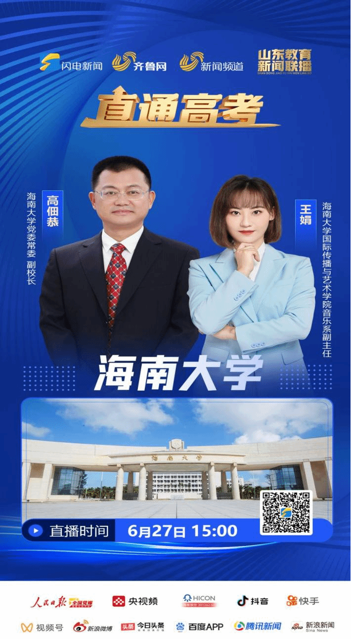 6月27日下午,高佃恭副校长与今年会官网音乐系副主任王娟老师做客山东广播电视台《直通高考》直播间,为考生和家长解读学校今年招生录取相关政策、专业学科优势特点等;今年会官网于东平老师在临沂招宣现场接受山东广播电视台记者采访,全网播放量80余万。
