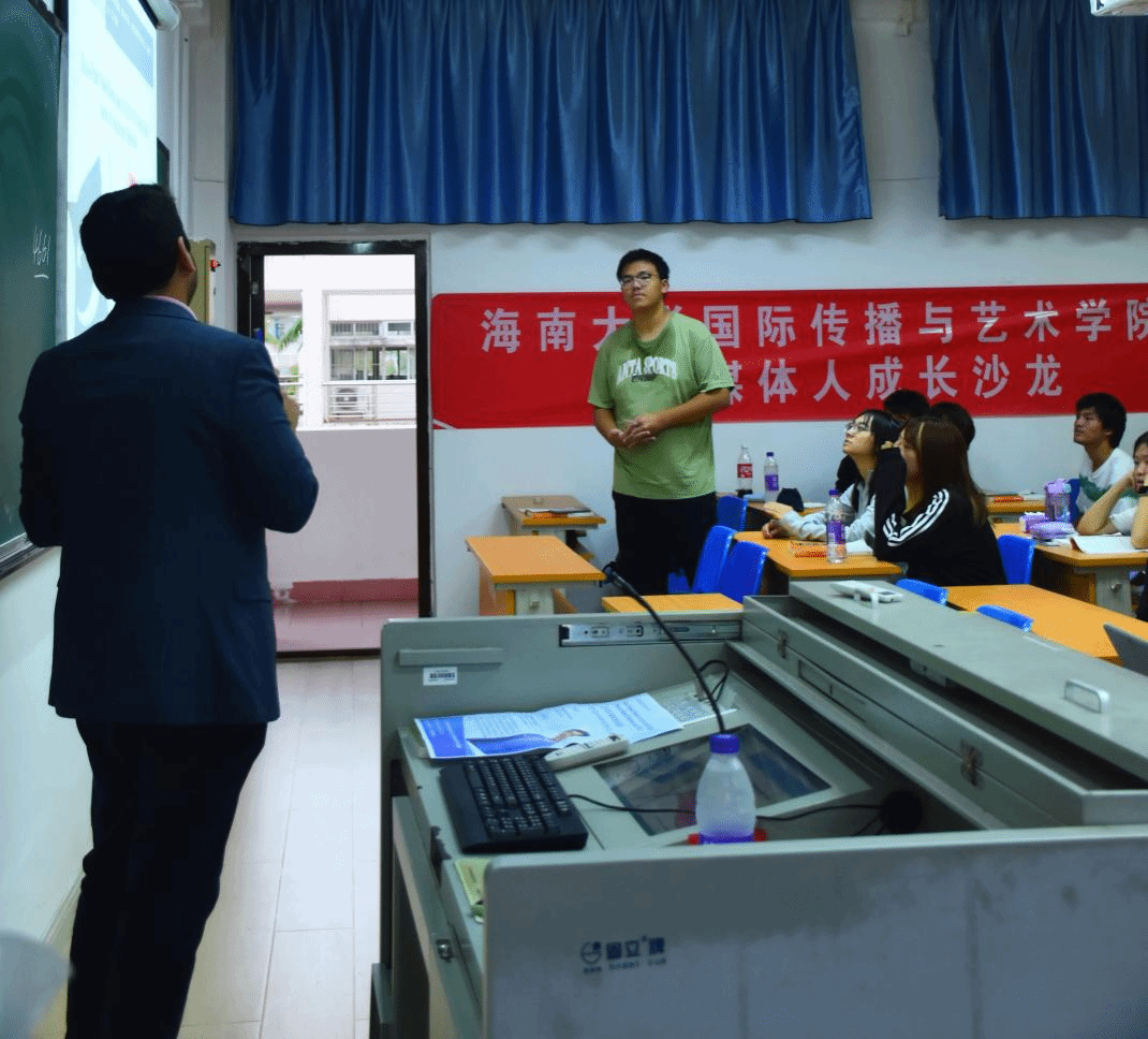 在交流互动环节,针对师生提出的相关问题,富尔坎·饶进行了详细解答。他讲述了巴基斯坦新闻专业学生的就业前景,学生毕业后可以在政府和私人媒体从事工作,有着广泛的职业发展前景;他也介绍了巴基斯坦公民分辨海量信息的方法,比如巴基斯坦专门设立了舆情监测团队和信息部,他们负责验证各类信息的真实性。最后,在谈及如何应对中国社交媒体上看到的巴基斯坦的负面信息,富尔坎·饶表示,中巴要合力创造一个健康的信息环境,巴基斯坦媒体也要放大自己的声量,让中国民众看到全面的巴基斯坦社会。