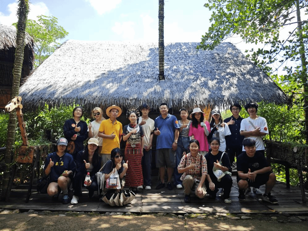第三天,同学们在保亭县槟榔谷景区体验了丰富多彩的黎族文化,既对黎族的历史传统、生活信仰有了深入了解,还与当地黎族人民进行了“互动”对话。韩天一同学用一首歌曲,唤出了对黎族传统婚姻习俗充满向往的美丽黎族姑娘;大家用一句“bulang”进行热情招呼,一句“wifli”表达道谢之意。同学们沉浸深入地体验了黎族人的质朴善良,这为美术创作积蓄了重要情感体验。