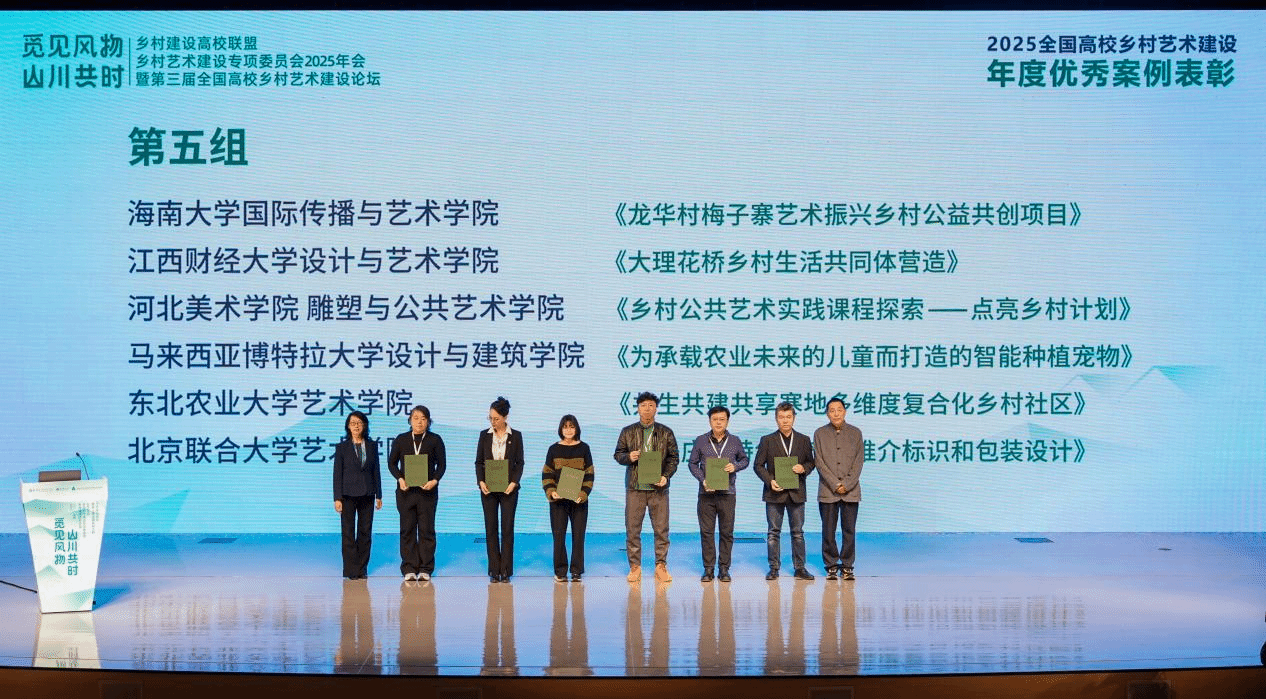 今年会官网“海岛艺术创新研究”团队作品《龙华村梅子寨艺术振兴乡村公益共创项目》从来自60余所高校的近300件参展作品中脱颖而出,荣获“2025全国高校乡村艺术建设年度优秀案例”。该团队由包格日乐吐教授领衔,张春梅、王莉、志勇、束博等师生共同参与组建。