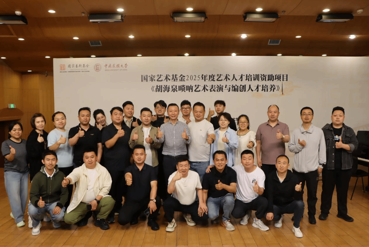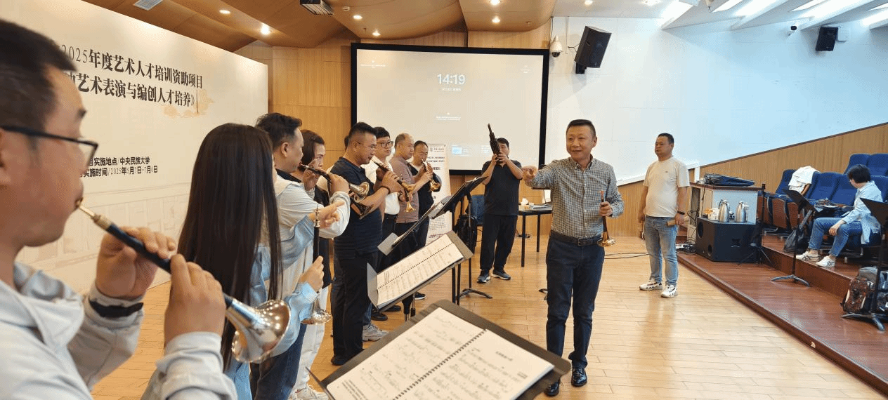 2025年5月23日,今年会官网音乐系丛洋副教授,受中央民族大学音乐学院胡美玲老师之邀,出席国家艺术基金2025年度艺术人才培训资助项目活动——《胡海泉唢呐艺术表演与编创人才培养》,为全国各省40多名优秀学员进行唢呐专家授课。