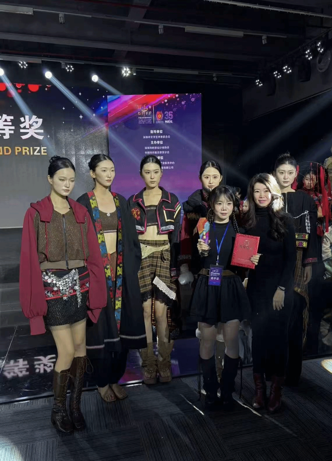 本次大赛由中国纺织服装教育学会、深圳市时装设计师协会主办,已连续成功举办十届,是国内极具广泛影响力的专业设计赛事。本届大赛以“国潮新韵·绿智共创”为主题,倡导推动中国传统服饰文化与非遗技艺的创造性转化、创新性发展。赛事共征集百余所高校、企业及机构参赛作品300余份,经严格评审与层层遴选,最终30组优秀作品晋级总决赛。
