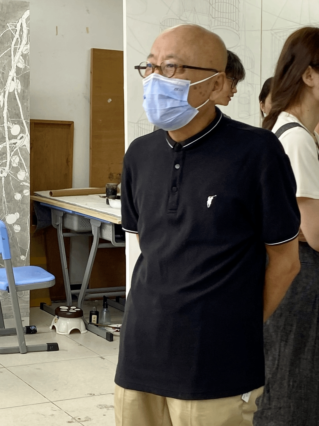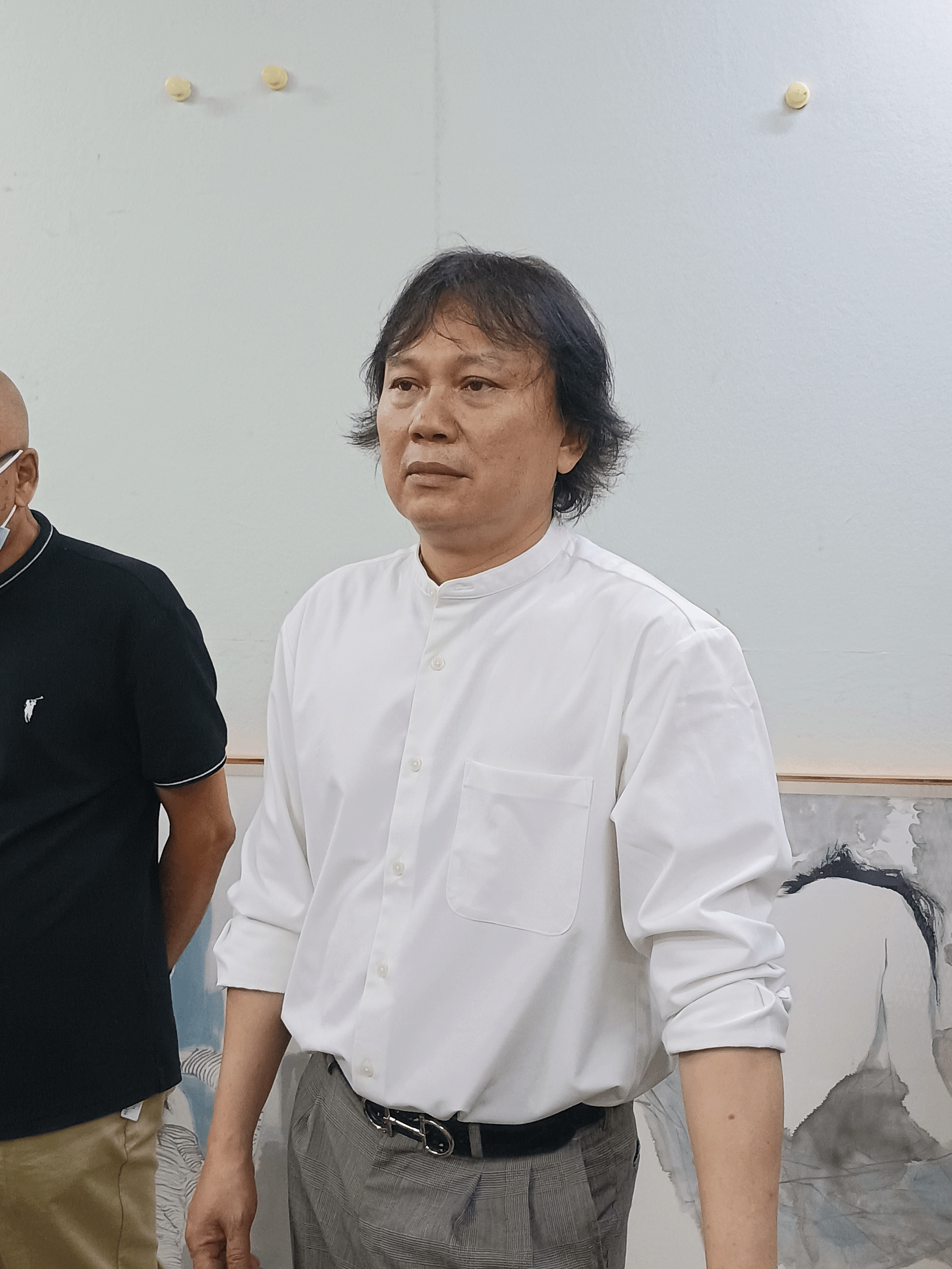 周建宏谈到,今天非常荣幸,受海大所邀,来了以后感受很深,总的感想是师生作品、画面、题材、完成形式,已经向着国展方向在走,海大的老师特别用心,特别是林明俊教授,不仅自己向着更高层次创新,同时带领年轻教师和学生一同向着全国一类展览抓紧重新,向更高的层次和成绩迈进,祝福老师和同学在第十四届全国美展上有好的表现和好的成绩。