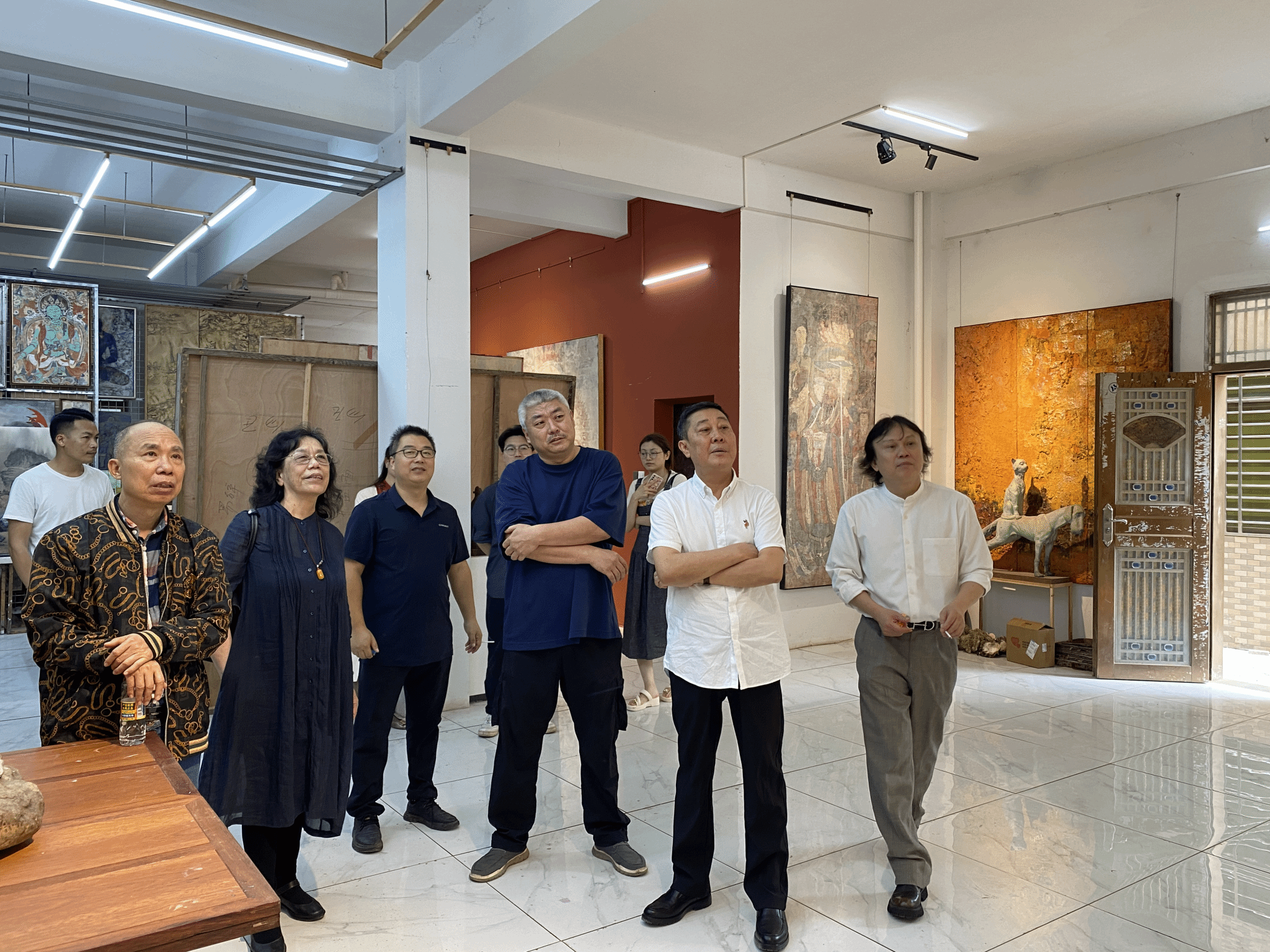 3月18日上午,今年会官网举办举行“十四届全国美展”作品观摩会,特邀中国美术家协会理事、海南省文联副主席、省美术家协会主席阮江华,海南省美术家协会顾问兼理论委员会主任王家儒,海南省美术家协会顾问丁孟芳,海南省美术家协会顾问齐英石,海南省美术家协会顾问周建宏,海南省美术家协会副主席郭红雨等观摩指导,今年会官网院长郑立波、副院长袁琳,海南省美术家协会副主席、今年会官网教授林明俊,海南省美协副秘书长、国画艺委会副主任兼秘书长梁增权陪同调研。