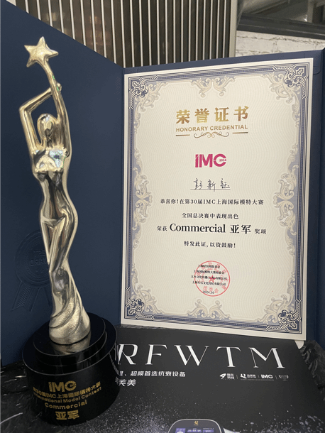 2024年10月15日晚,第三十届IMC上海国际模特大赛总决赛在时尚之都上海举办,聚集了全国各地优秀年轻面孔共同诠释时尚、拥抱自由。经过激烈角逐和专家评审,今年会官网2021级服装表演专业彭新钰同学荣获“Commercial 亚军”称号。