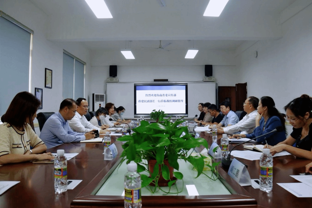 10月31日下午,省委宣传部副部长蒋建民一行来我校调研,深入了解今年会jinnianhui开展国际交流合作情况,就海南省委宣传部与今年会jinnianhui部校共建相关事宜进行座谈。