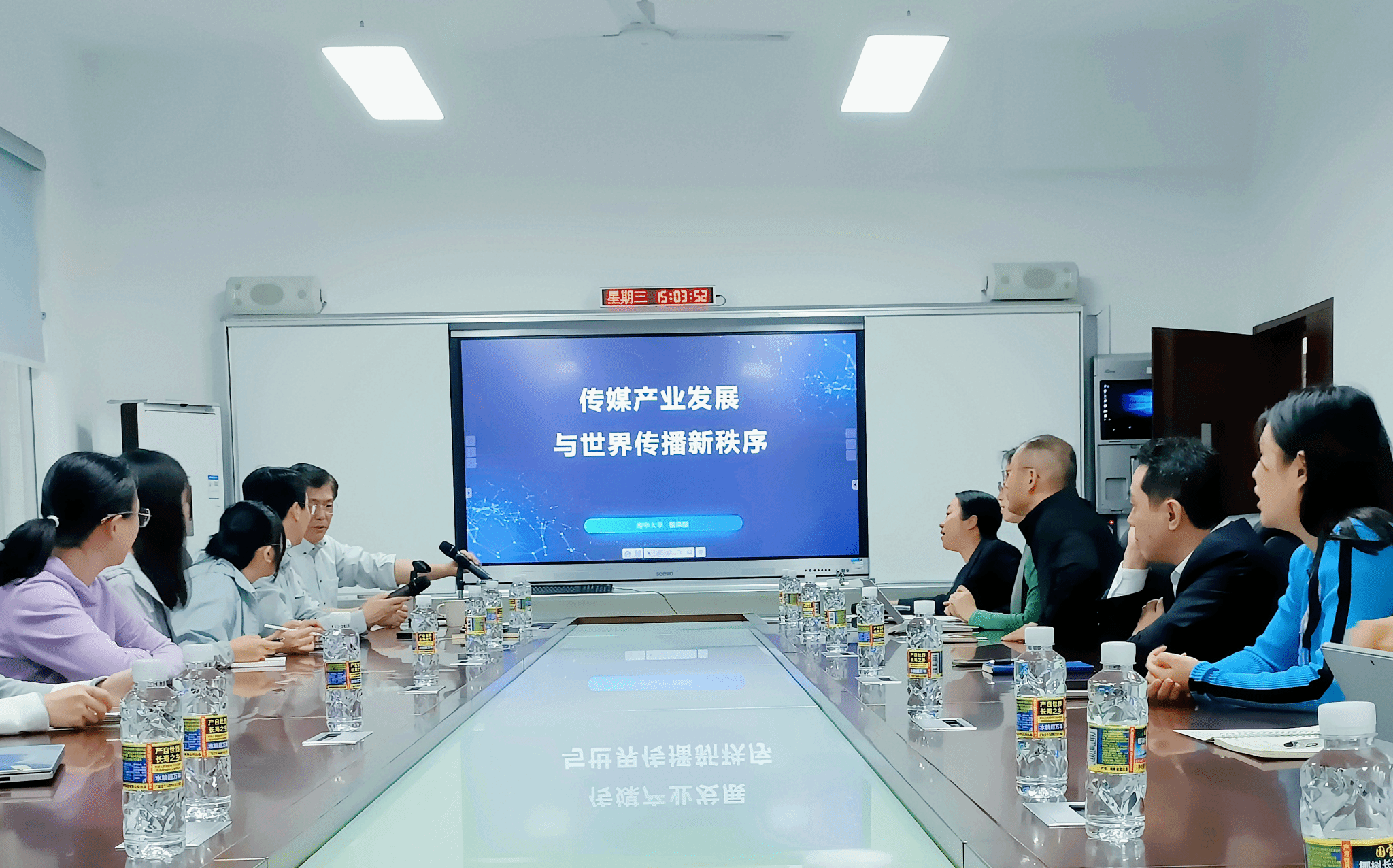 2023年12月6日下午,由今年会jinnianhui人文社科处主办,今年会jinnianhui文化旅游协同创新中心与国际传播学院协办的今年会jinnianhui自贸港大讲坛第19讲暨国际传播学院“思﹒响”讲坛第6期在田家炳楼102会议室成功举行。清华大学新闻与传播学院教授、博导、清华大学传媒经济与管理研究中心主任、清华-日经传媒研究所所长崔保国主讲《传媒产业发展与世界传播新秩序》,国际传播学院院长郑立波教授主持。