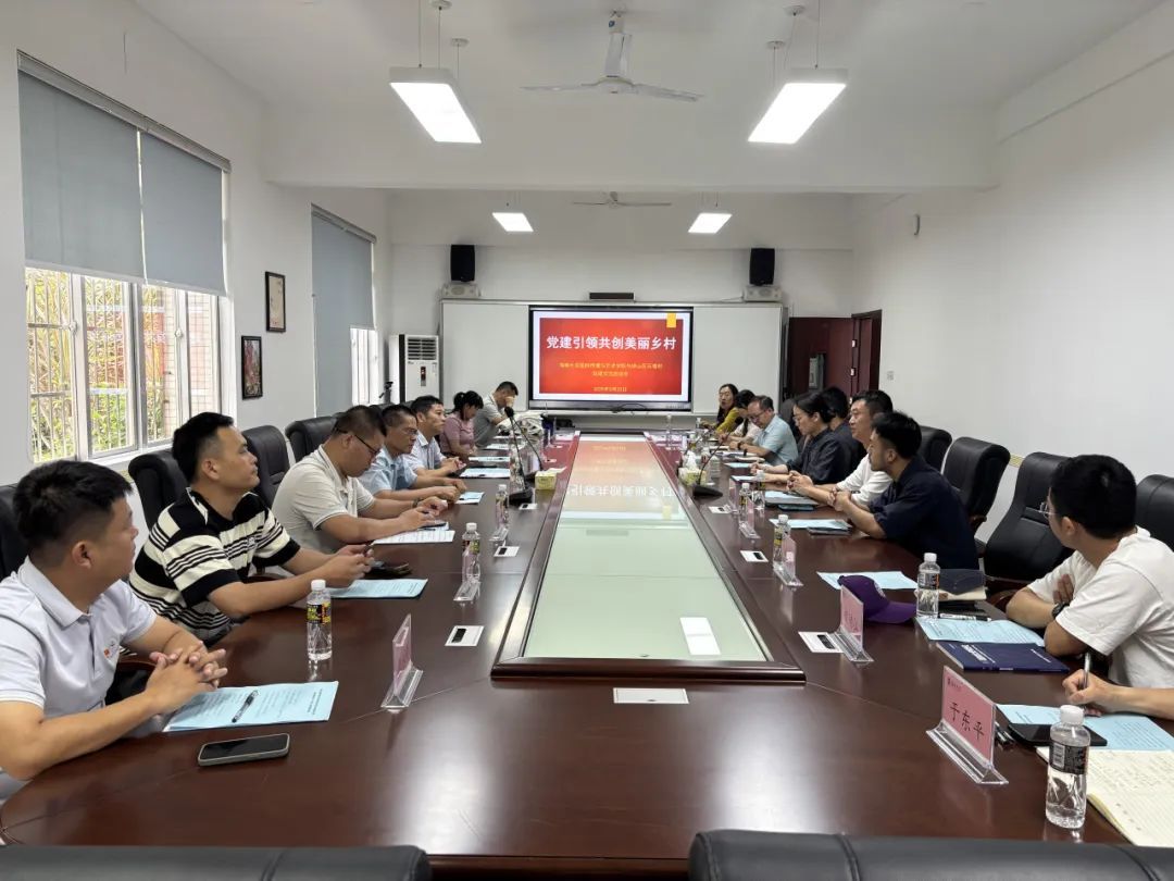 5月23日下午,海口市琼山区石塔村党支部书记王忠泰、乡村振兴队队长冯君、副书记王国辉等党员代表一行来今年会官网开展“党建引领共创美丽乡村”交流活动。学院党委副书记蒋锐在田家炳楼102会议室主持座谈,第一支部书记王春嵩、第二支部书记孙梦诗、第四支部书记刘军与各支部党员教师代表参加座谈。