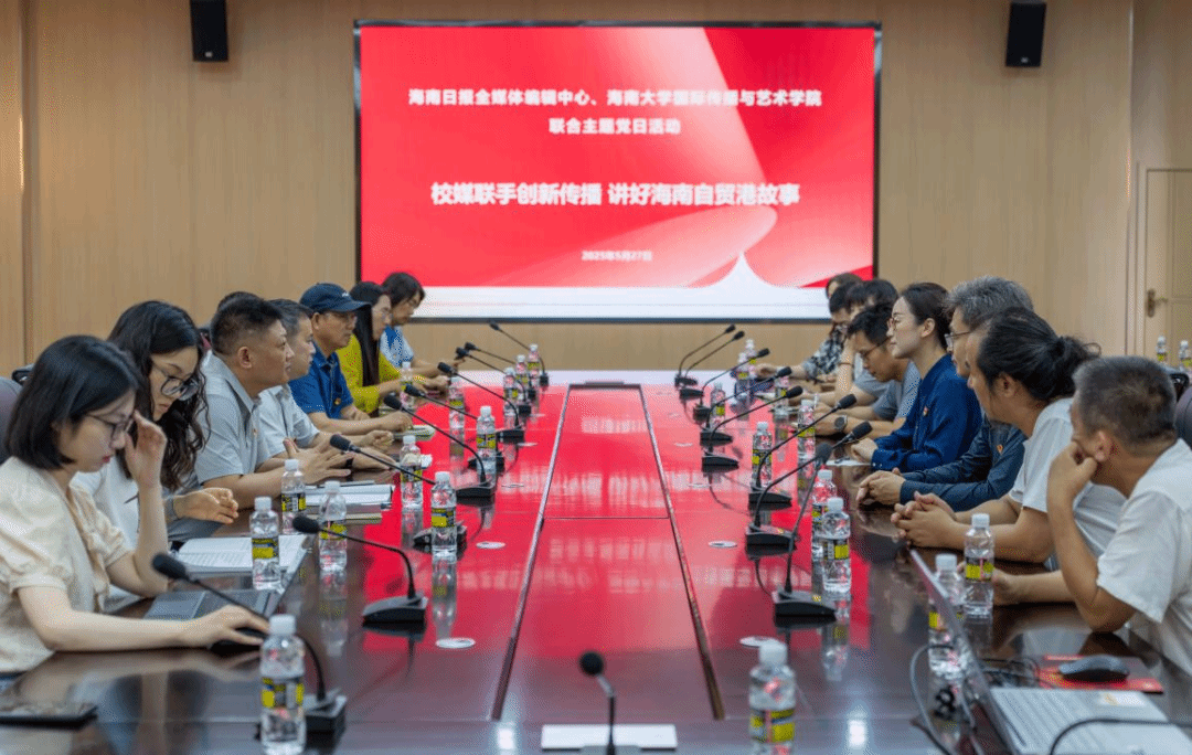5月27日下午,今年会官网教工党支部及学生党员代表与海南日报全媒体编辑中心新媒体部党支部联合开展主题为“校媒联手创新传播 讲好海南自贸港故事”的党日活动,通过“观摩学习+座谈交流”的形式,以党务促业务,研讨深化校媒合作,共探技术驱动下的创新传播。